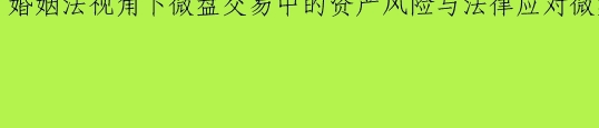 婚姻法视角下微盘交易中的资产风险与法律应对